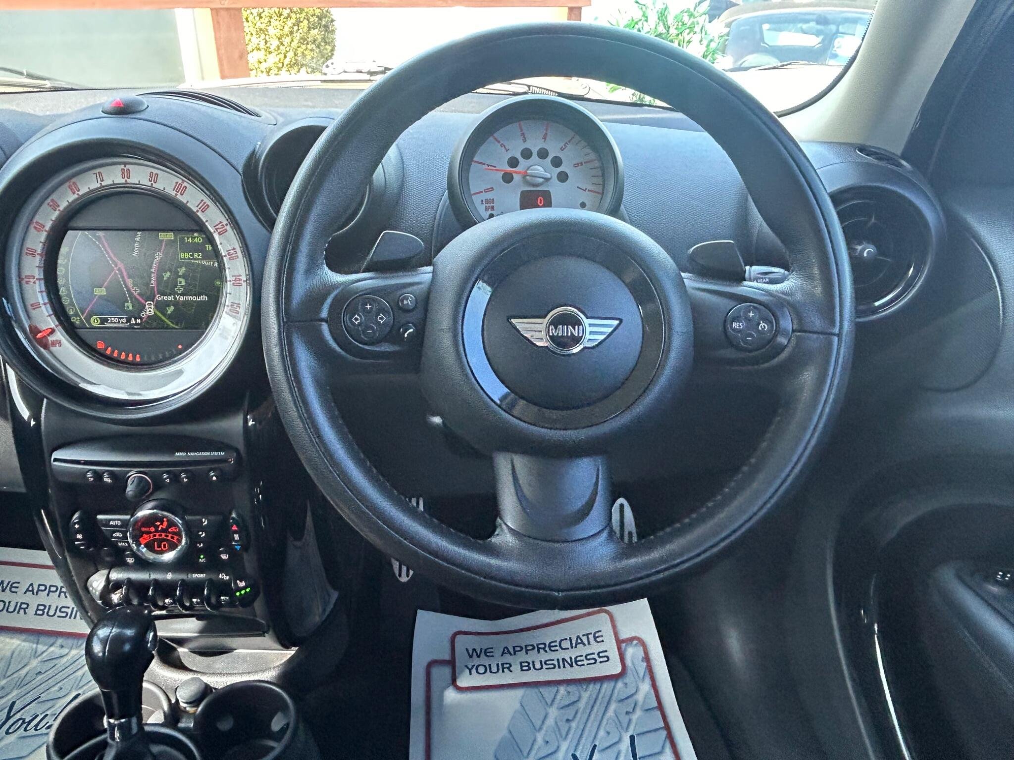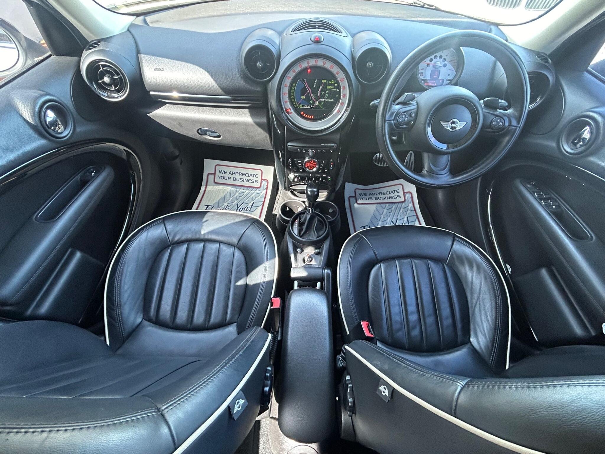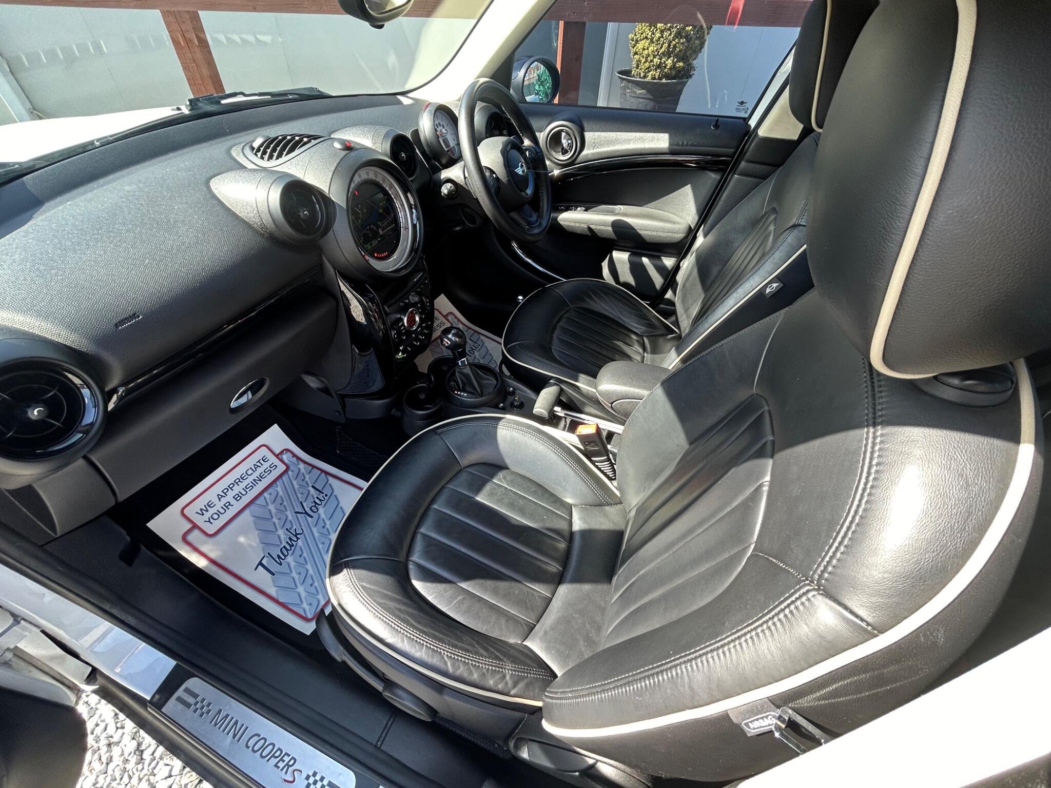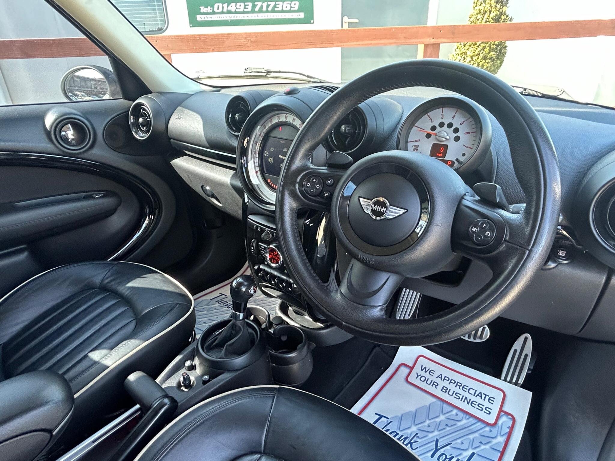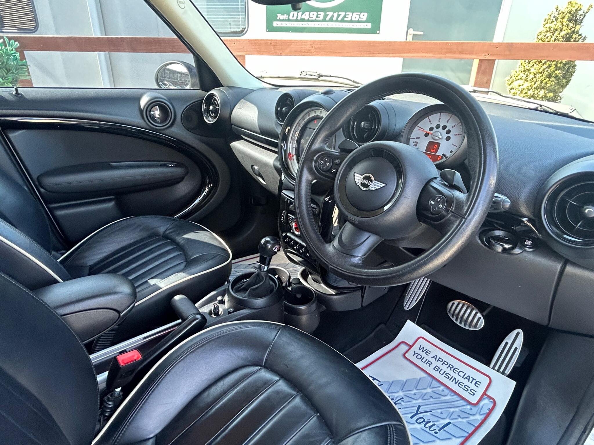 Finished In White, This Mini Countryman Automatic SD Has A Very High Specification. 2013 MINI Countryman Cooper SD presents an exceptional opportunity with its remarkably low mileage of just 59,000 miles for its age. Powered by a 2.0L Diesel Engine, this Cooper SD variant boasts a sophisticated Leather Lounge interior in Carbon Black, complemented by a Media Pack that includes full Bluetooth telephone preparation with USB audio and MINI Connected functionality. Comfort is further enhanced with seat heating for both the driver and front passenger, ensuring a pleasant experience in all conditions. The low insurance group rating for this MINI Countryman Cooper SD is a significant advantage, indicating lower running costs compared to many similar vehicles. Combined with its frugal diesel engine and the desirable features like the Media Pack and heated seats, this Countryman offers a compelling blend of style, practicality, and economy, making it a standout choice for those seeking a well equipped and well maintained compact SUV. -